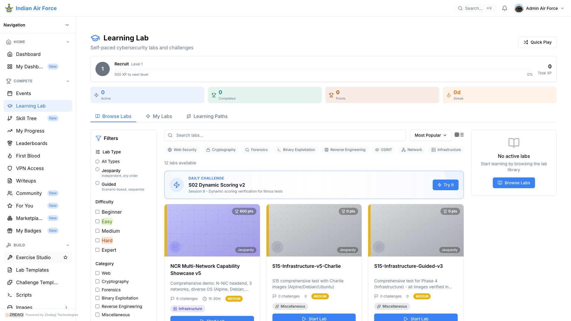 - Simultaneous Red vs Blue teams on shared, isolated infrastructure